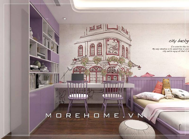 Thiết kế phòng ngủ con gái hiện đại, trẻ trung với gam màu tím nhẹ nhàng, lãng mạn và tinh tế