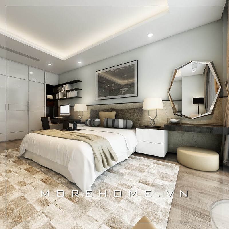 Thiết kế giường ngủ phòng bố mẹ phong cách hiện đại, đơn giản vô cùng tiện nghi