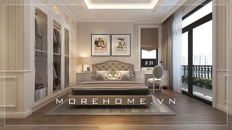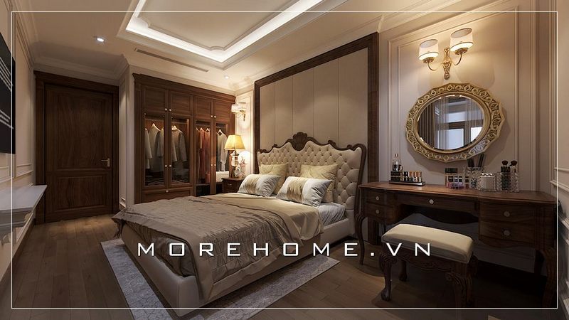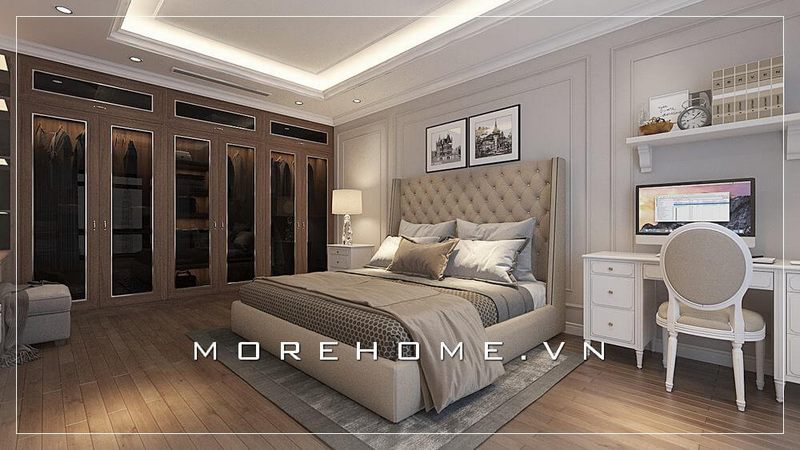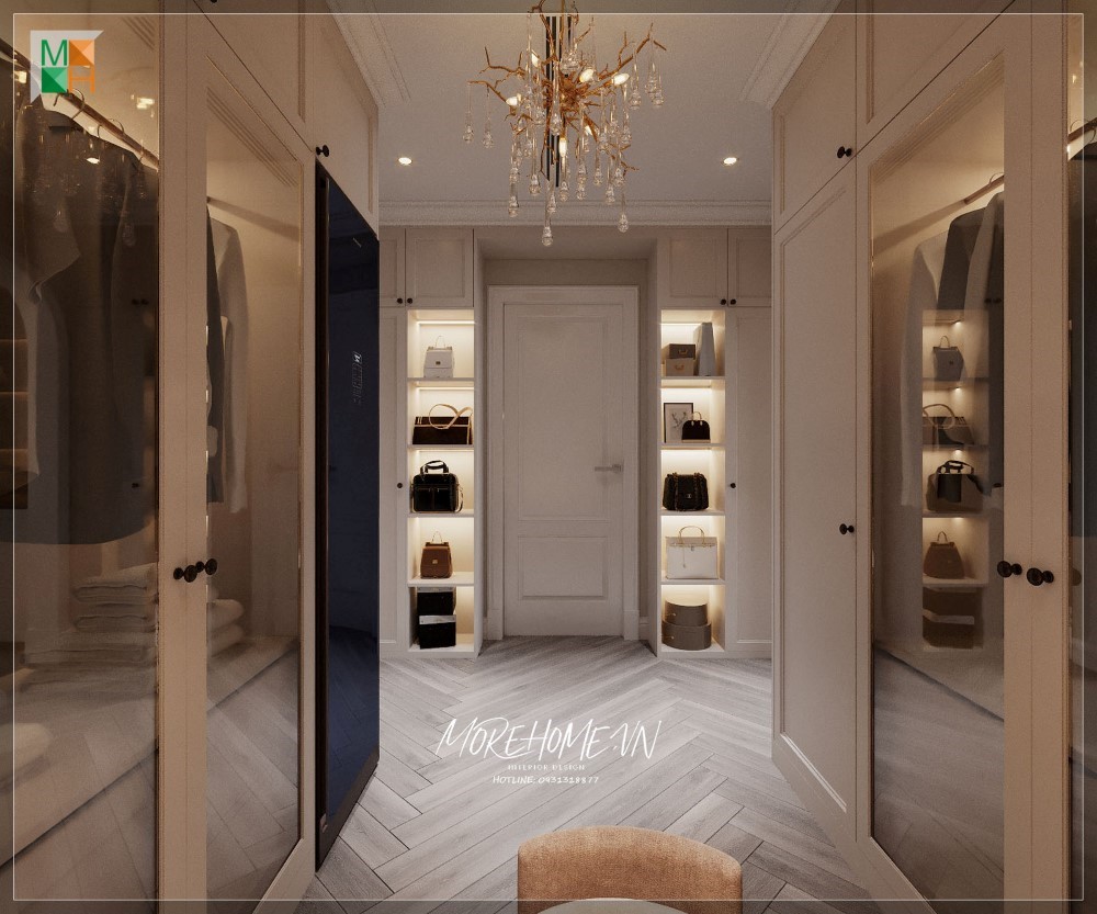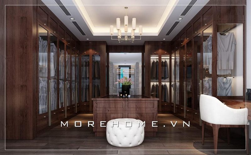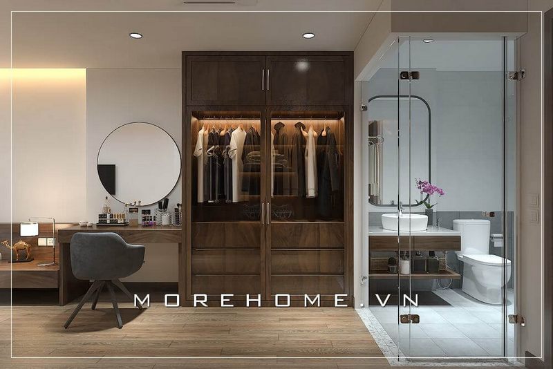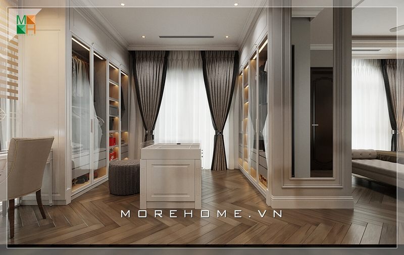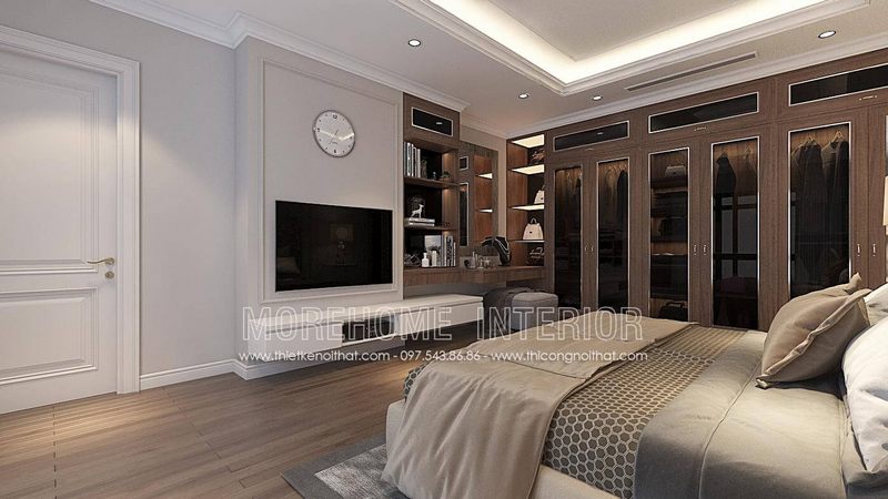 Thiết kế tủ áo hiện đại cho phòng ngủ master tại biệt thự cao cấp