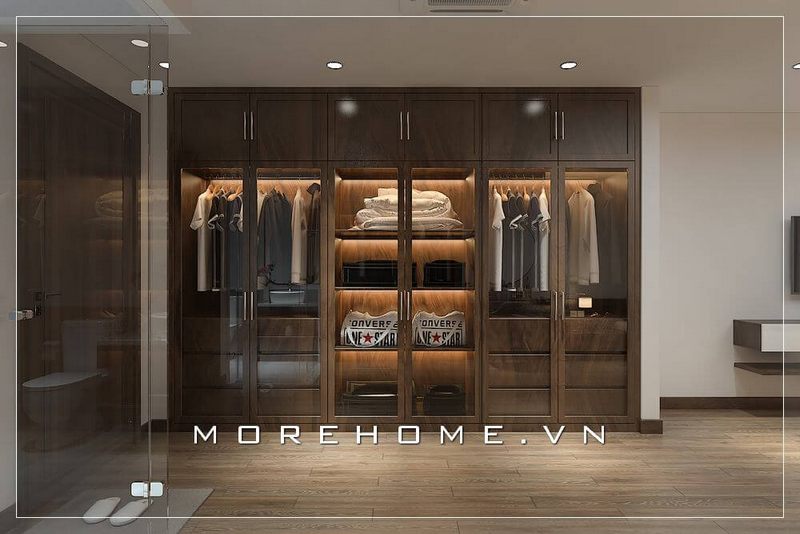 Tủ áo gỗ óc chó hiện đại kết hợp cánh kính sang trọng đáp ứng được công năng và nhu cầu của gia chủ