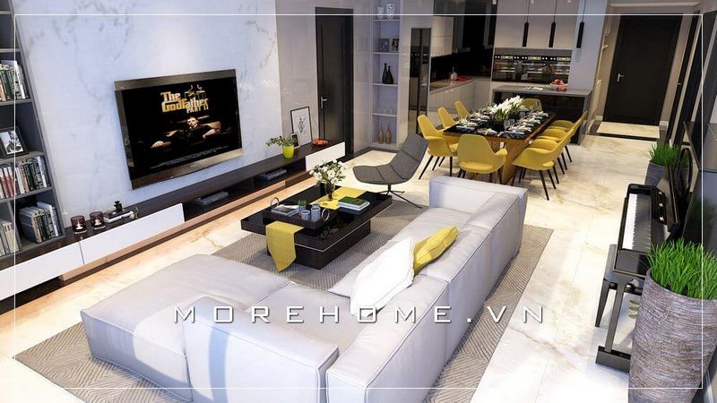 Thiết kế nội thất phòng khách căn hộ theo phong cách hiện đại vừa tiện nghi sang trong, vừa tối ưu không gian