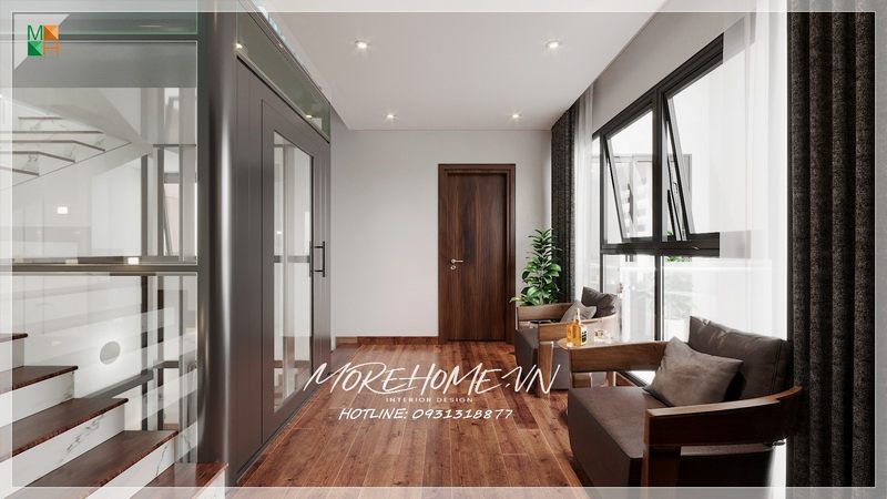 Hành lang tầng của biệt thự, nhà phố rộng và thoáng nhờ thiết kế kính trong suốt ở nhiều vị trí khác nhau như tường, cách cầu thang,....