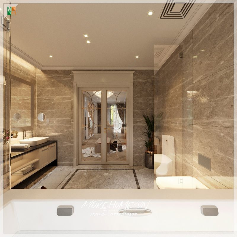 Đặc thù của nhà tắm là thường xuyên tiếp xúc với nước bởi vậy không giống như không gian khác trong nhà, mọi chất liệu và đồ nội thất phòng tắm được lựa chọn chi tiết và tỷ mẩn. Mọi đồ nội thất được lựa chọn đều là mang tính chất không thấm nước và khả năng chịu nhiệt tốt.