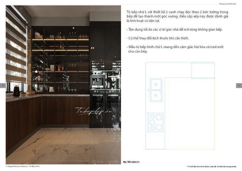Một thiết kế nội thất phòng bếp sáng tạo có sự kết hợp gỗ và kính tạo không gian trẻ trung và tiện nghi hơn
