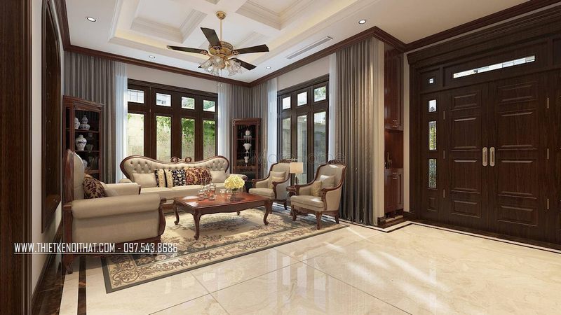 Thi công nội thất gỗ phòng khách biệt thự tân cổ điển
