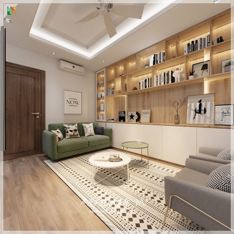 Phòng khách sử dụng cửa gỗ An Cường Laminate vân gỗ tông trầm MH04