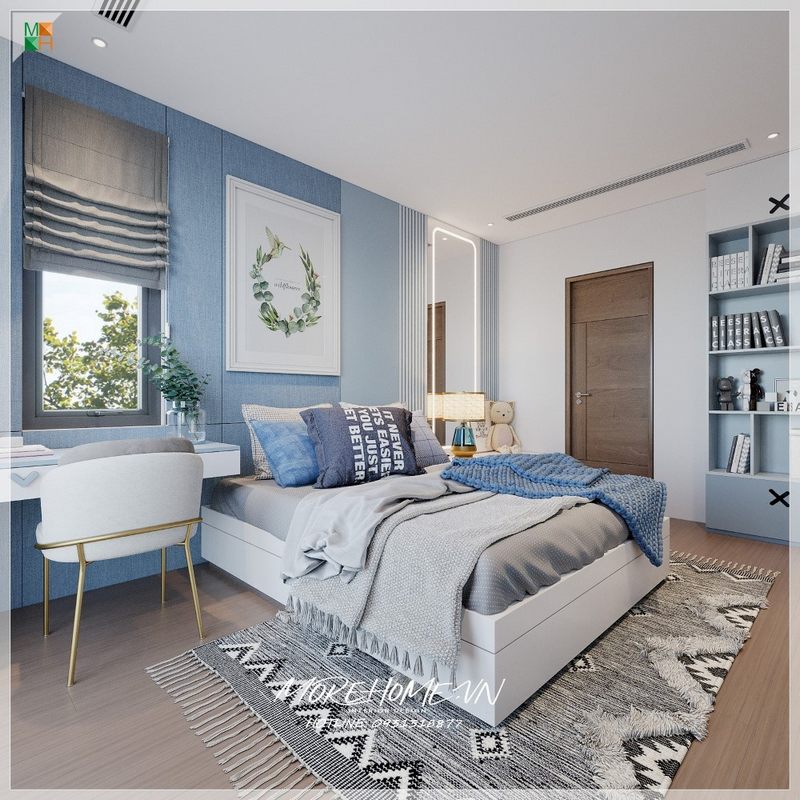 Không gian phòng ngủ thẩm mỹ cao cấp được trang trí bằng thảm trải sàn tô điểm.