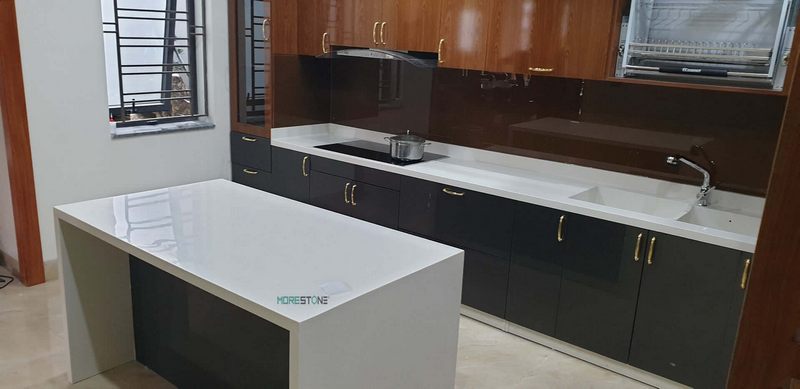 Đề nghị sử dụng đá ốp bếp màu trắng trơn S028 để trang trí căn bếp của biệt thự hoặc chung cư để tạo nên một không gian độc đáo.